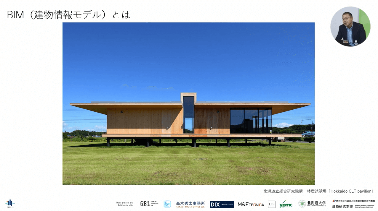 それではまず最初に、BIMについて簡単に説明していきます。上図は、北海道の旭川にある総合研究機構林産試験場の建物です。